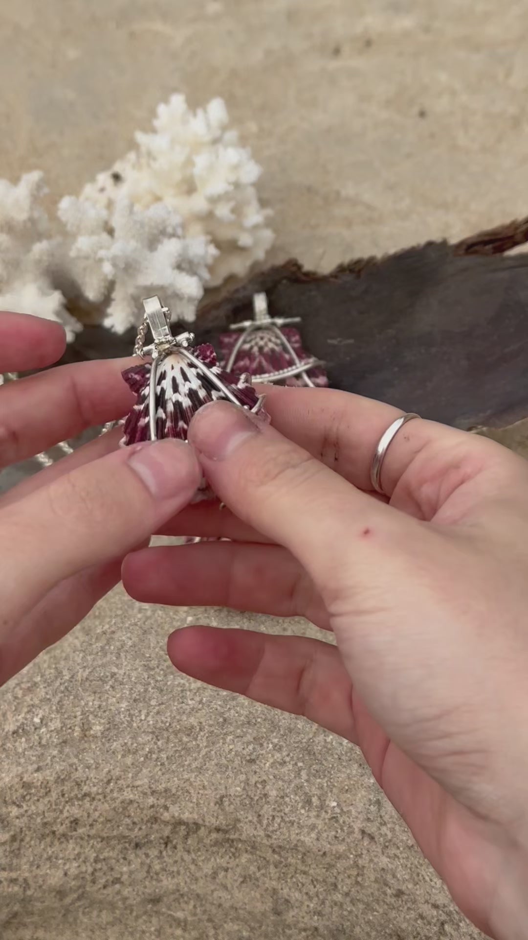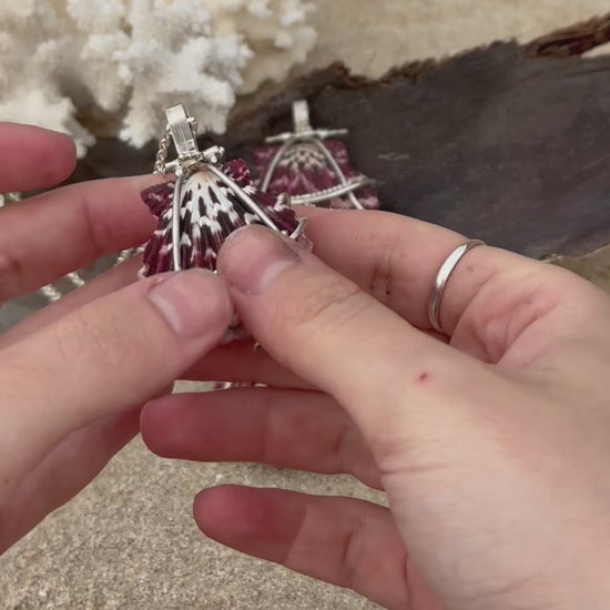 Forged for the daughters of the sea, this talisman holds the heart of oceanic memory. Two scallop shells ,Encased in sterling silver, it opens like a sacred book of the tide- revealing a baroque pearl, raw and untamed, resting at its heart. Each curve tells a story of moonlit currents and whispered siren songs.